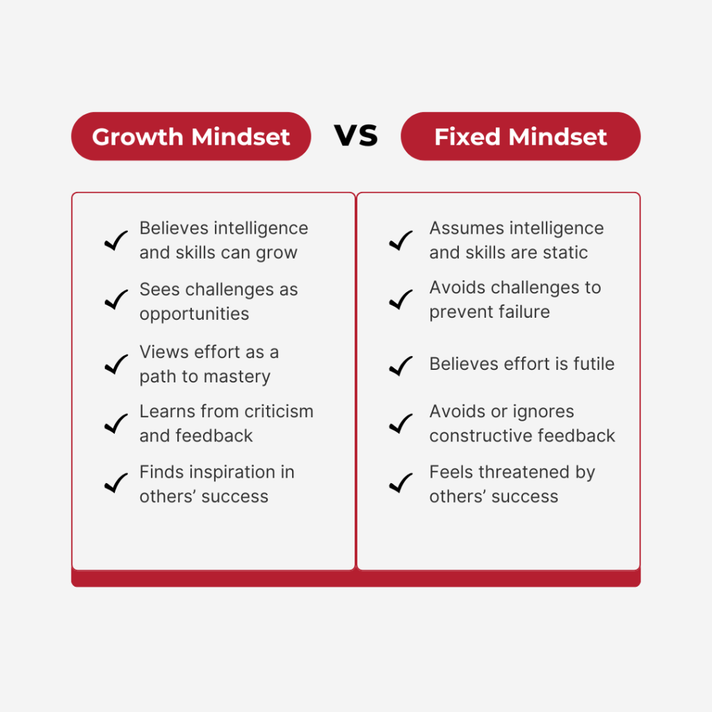 Before fostering a growth mindset, it’s essential to distinguish it from a fixed mindset. Here’s a breakdown: